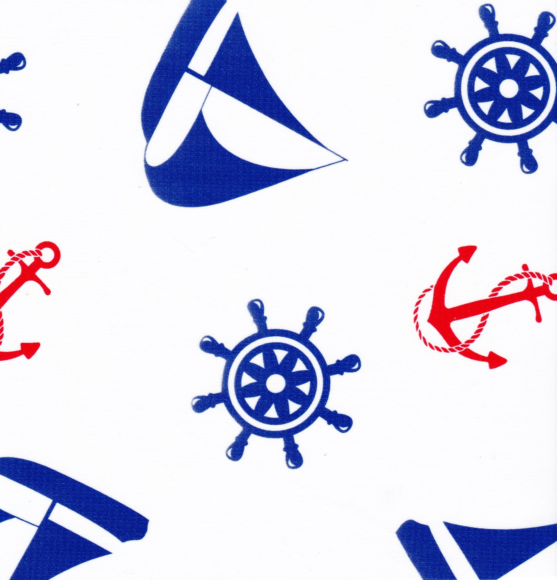Blue and Red Anchors Oilcloth Fabric by the Yard