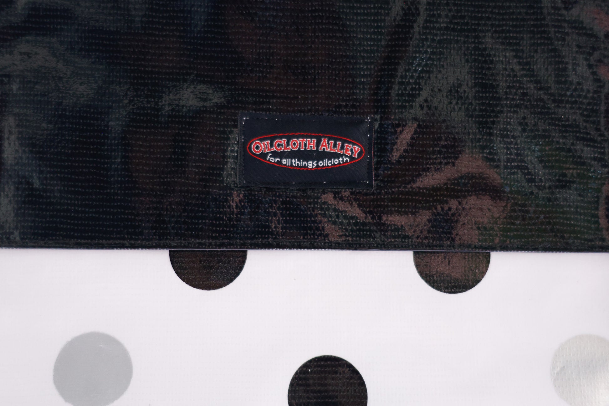 Our oilcloth lunch bags are so cute and convenient, you'll never want to use a paper bag again! They wipe clean with a damp cloth, making messy lunch bags a thing of the past. You'll be the envy of the lunchroom! This style has Black and Silver Confetti with an accent of Black Oilcloth.