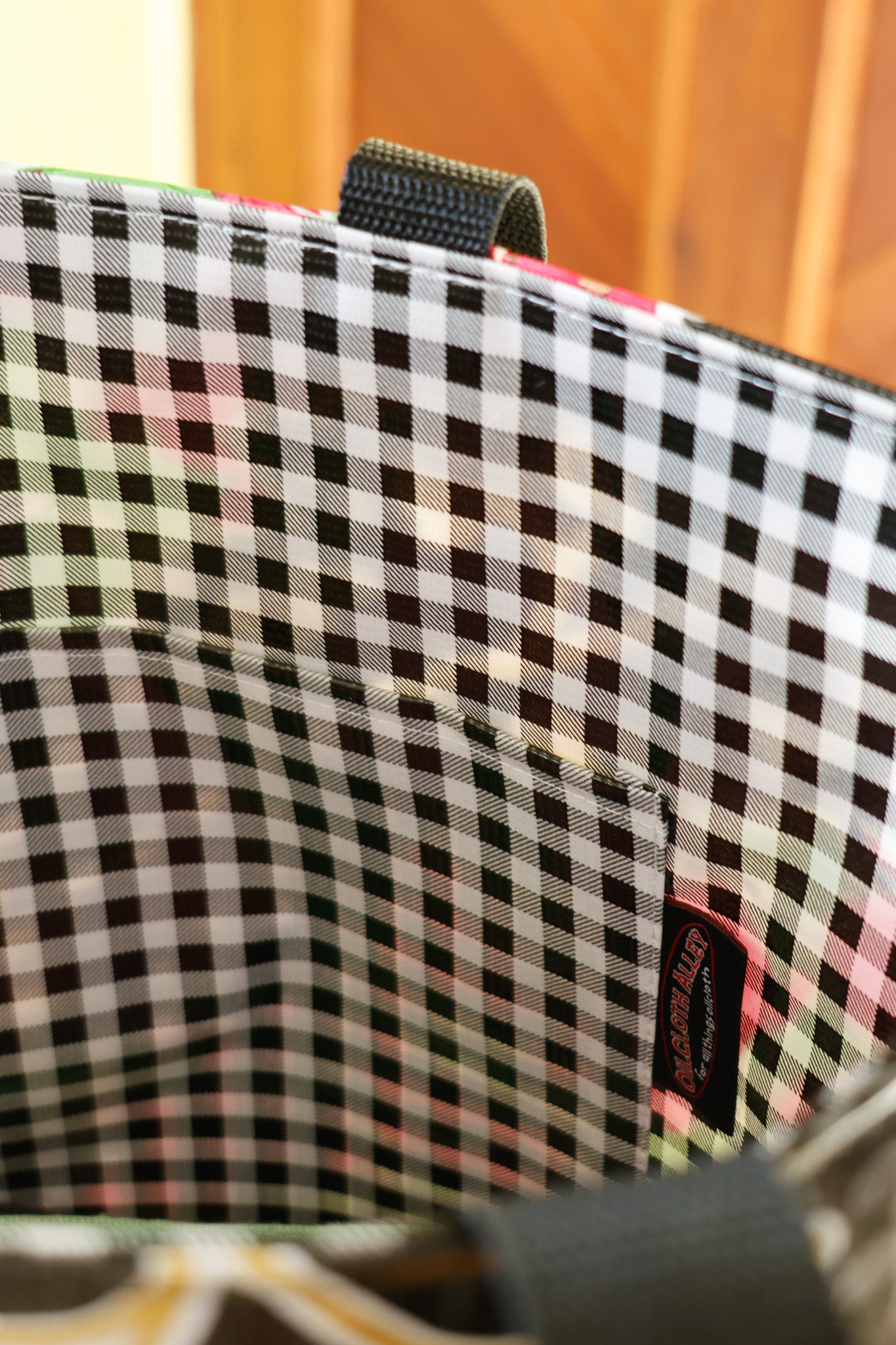 Reversible Oilcloth Totebag - Black Bougainvillea with Black Gingham - Two Sizes