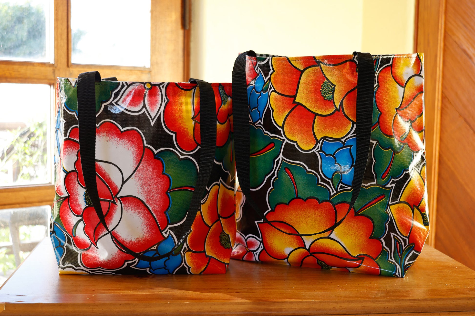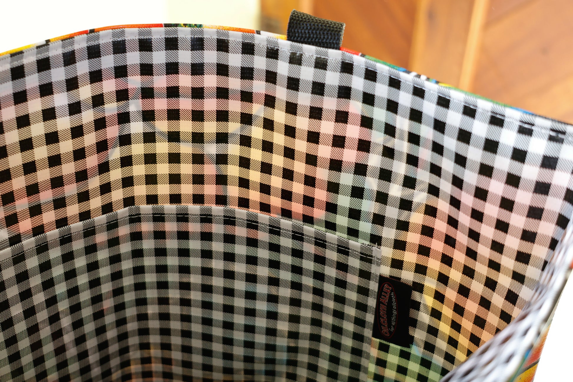 Reversible Oilcloth Totebag - Black Royal Roses with Black Gingham - Two Sizes
