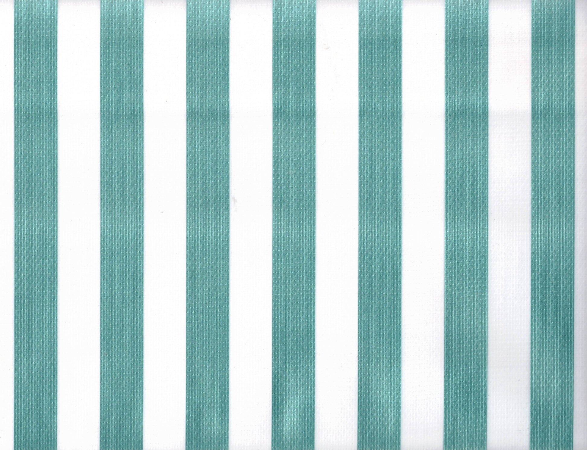 This fabric is 47" wide. Imported from Mexico, this Genuine Oilcloth has a PVC front and a 65% Polyester and 35% Cotton mesh backing.