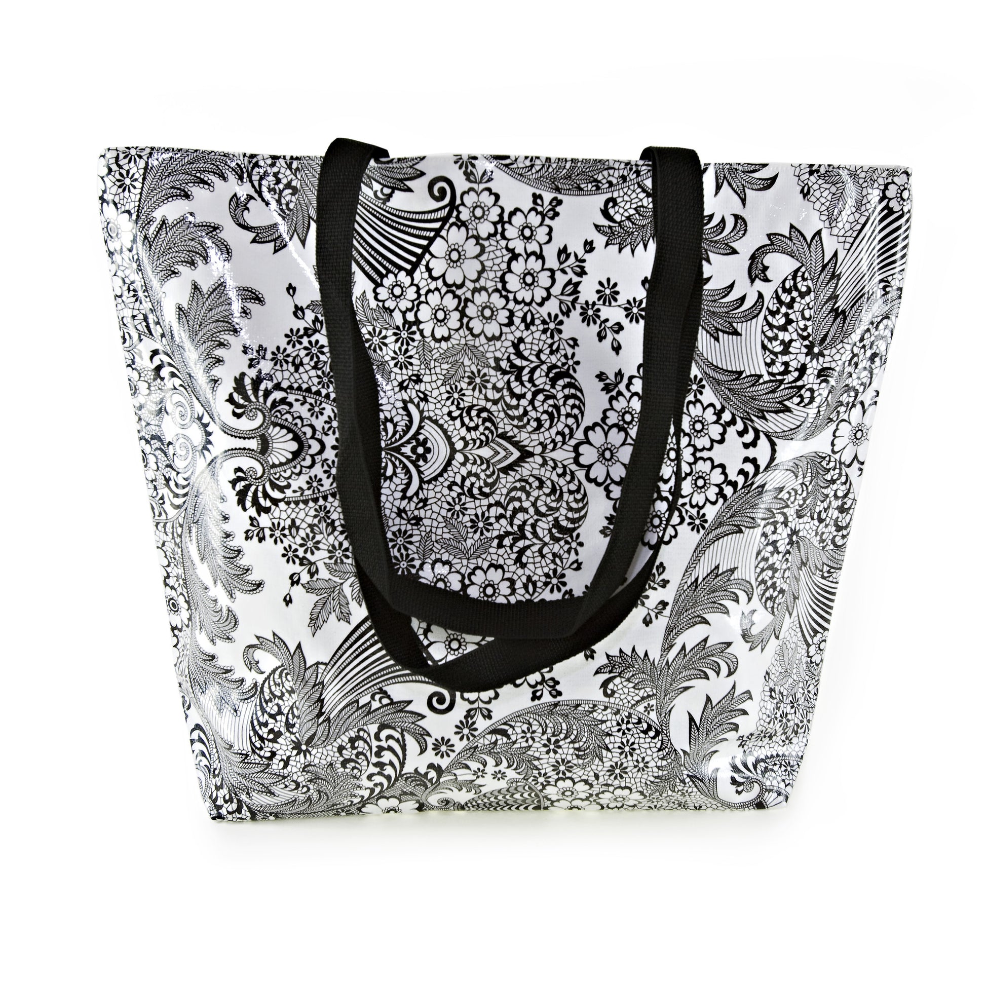 - Large tote dimensions: 18” wide x 15” tall with a 6” bottom, reinforced 30” shoulder straps