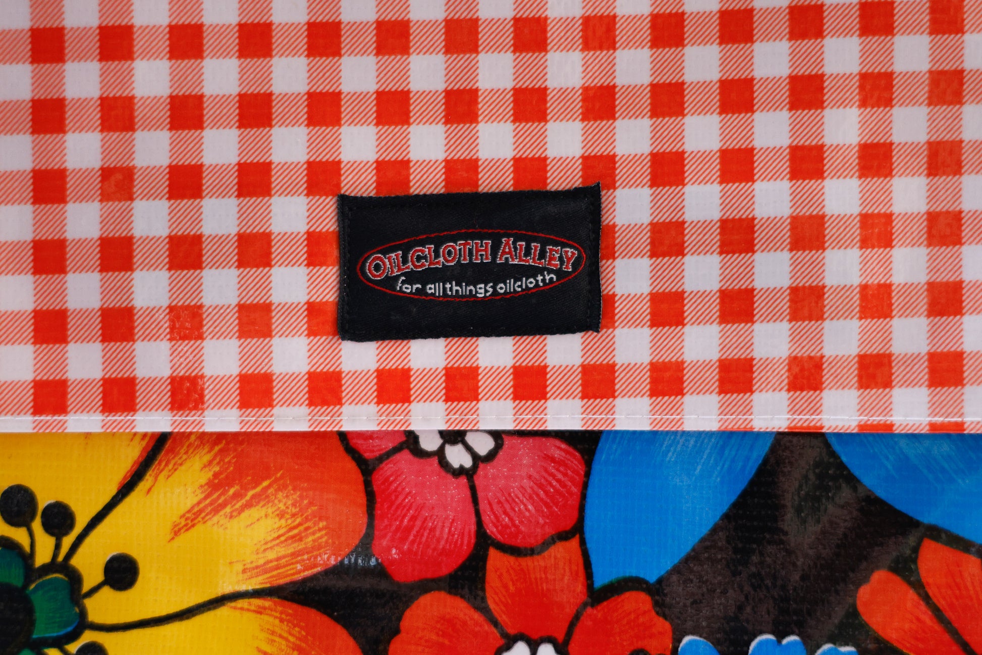 Our oilcloth lunch bags are so cute and convenient, you'll never want to use a paper bag again! They wipe clean with a damp cloth, making messy lunch bags a thing of the past. You'll be the envy of the lunchroom! This style has a Black Flora print with an accent of Orange and White Gingham.