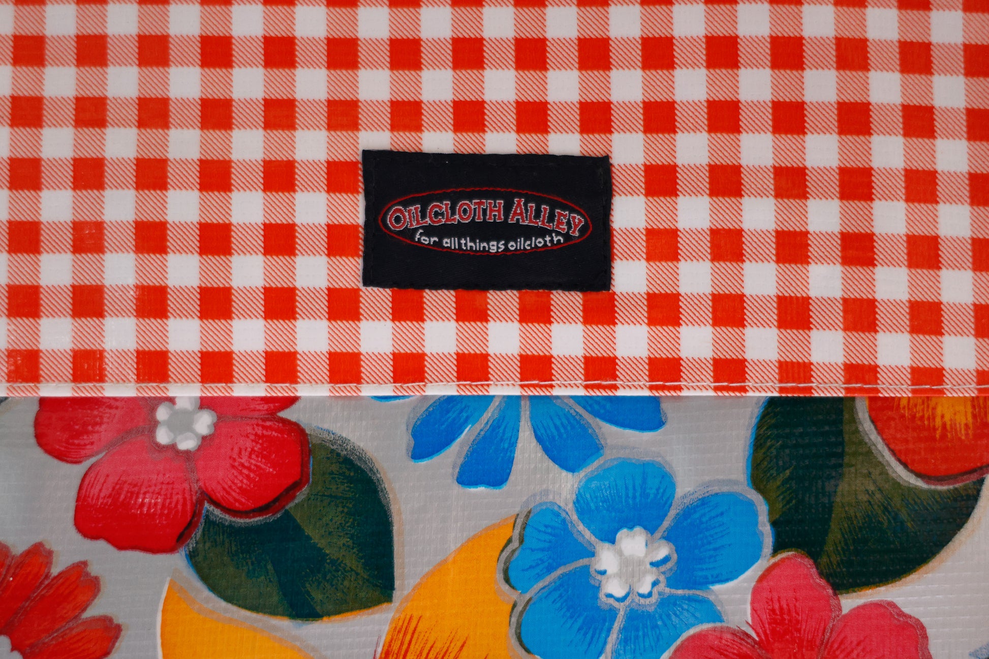 Our oilcloth lunch bags are so cute and convenient, you'll never want to use a paper bag again! They wipe clean with a damp cloth, making messy lunch bags a thing of the past. You'll be the envy of the lunchroom! This style has a Silver Flora print with an accent of Orange and White Gingham.