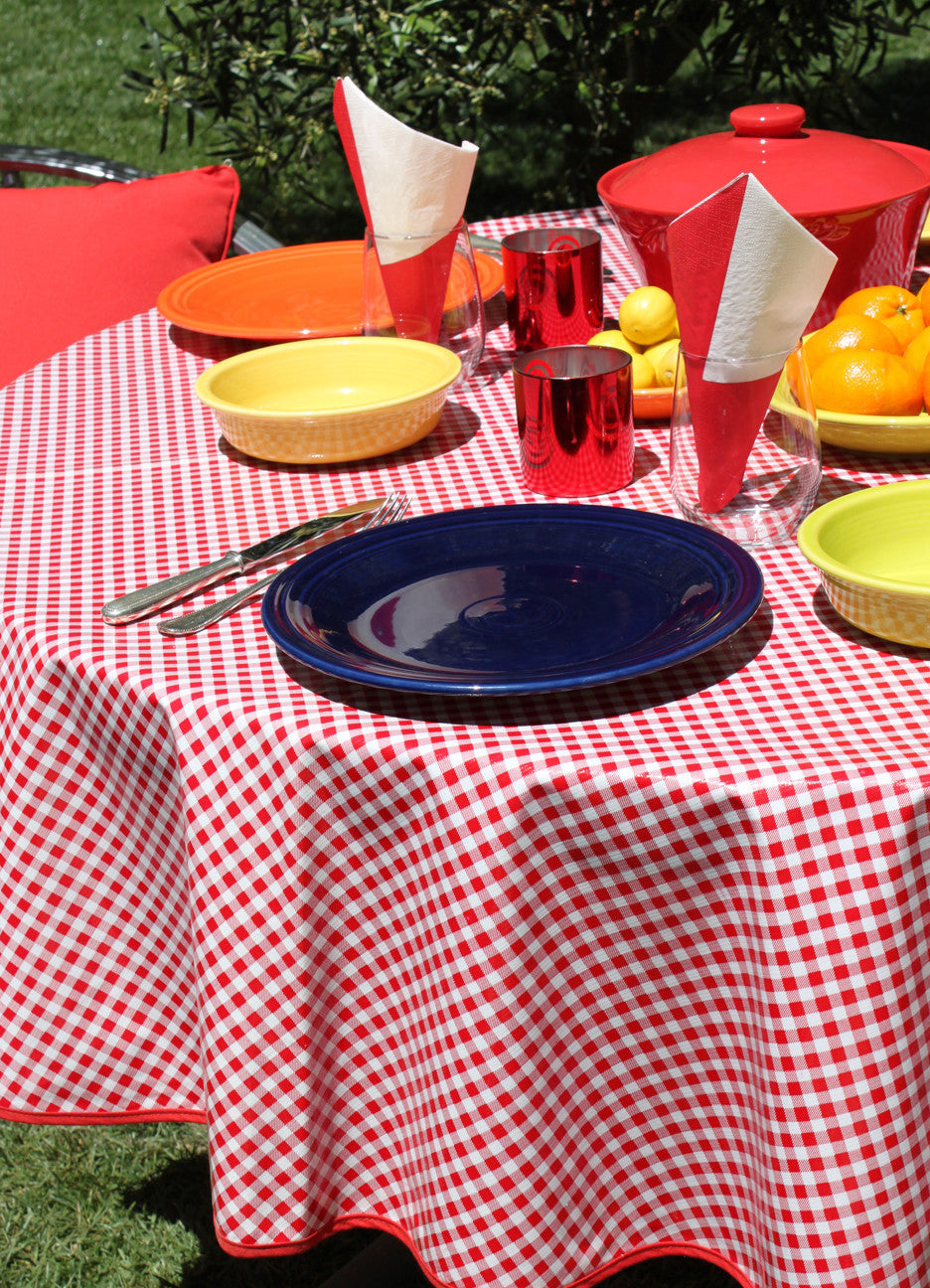 Classic Red and White Gingham Oilcloth is absolutely perfect for your Retro Kitchen Decor. Popular uses include aprons, tablecloths (Italian, Western BBQ & Picnic), placemats and totes! Each check is approx. 1/4 inch.