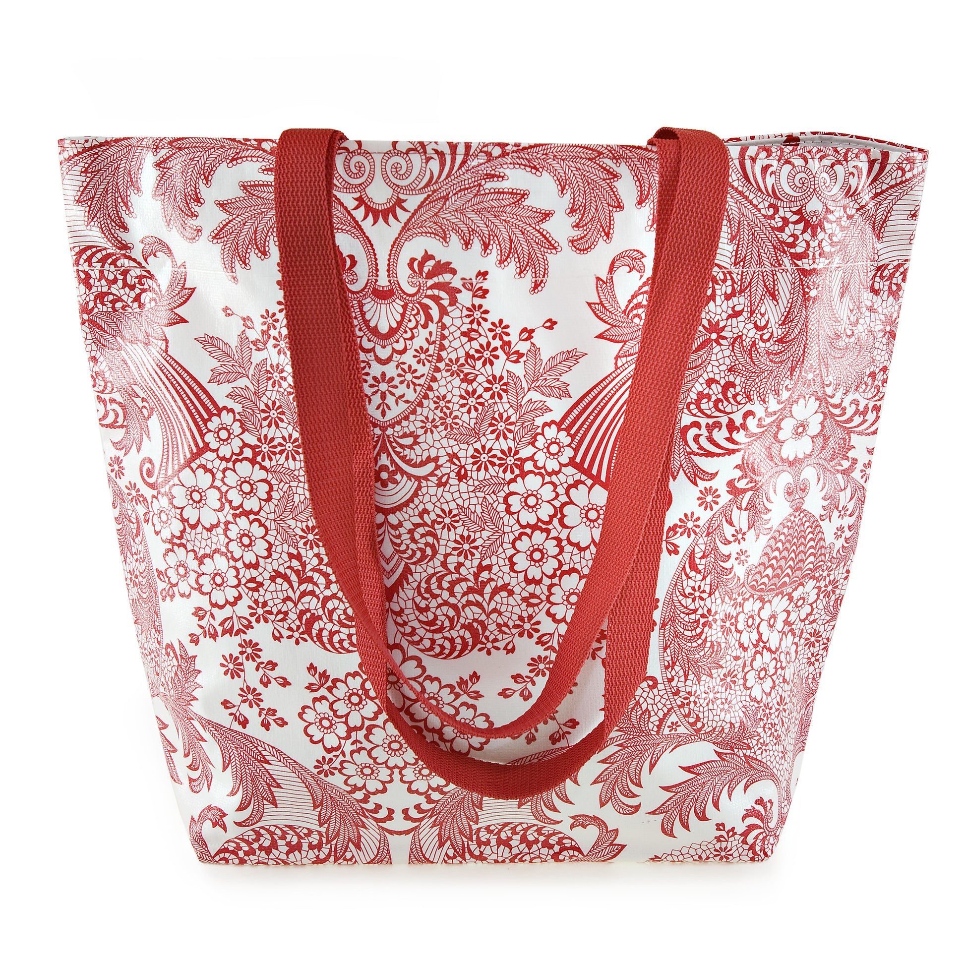 Reversible Oilcloth Totebag - Red Toile with Red Polka Dot, Two Sizes