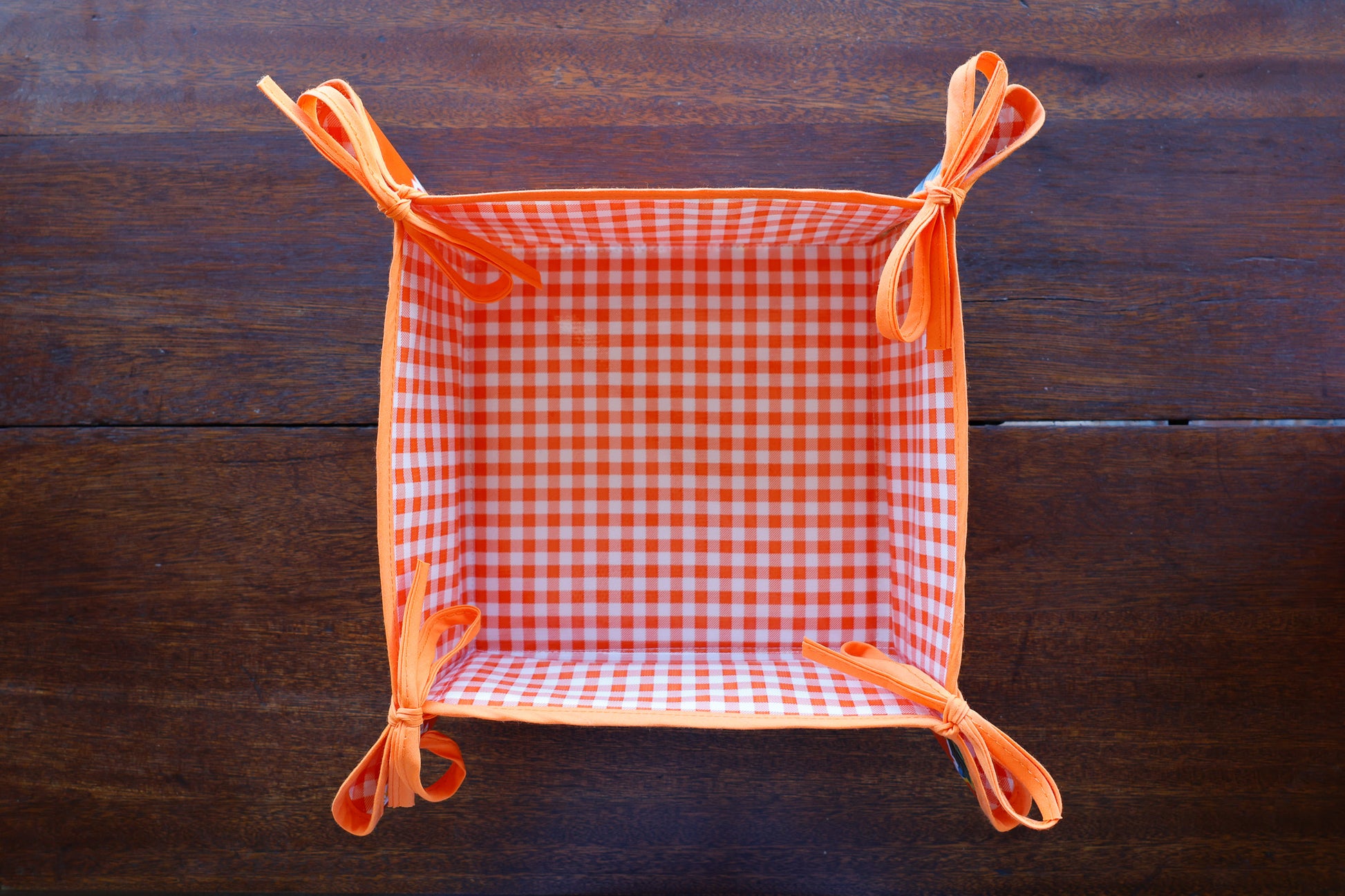 This bright style combines Orange Hibiscus and Orange Gingham. Reverse the basket when you want a new look!