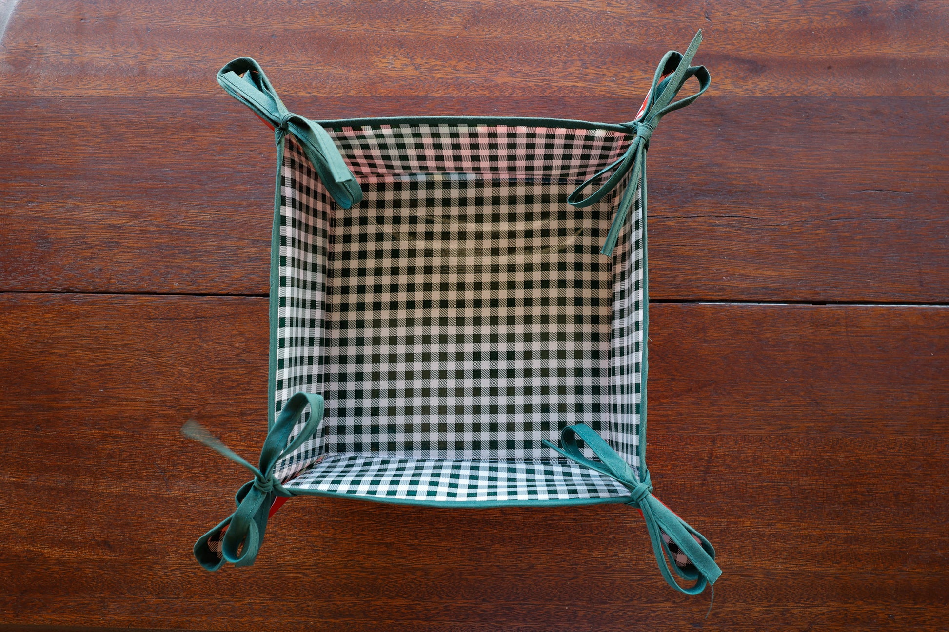 Reversible Oilcloth Basket in Red Vintage Christmas and Green Gingham