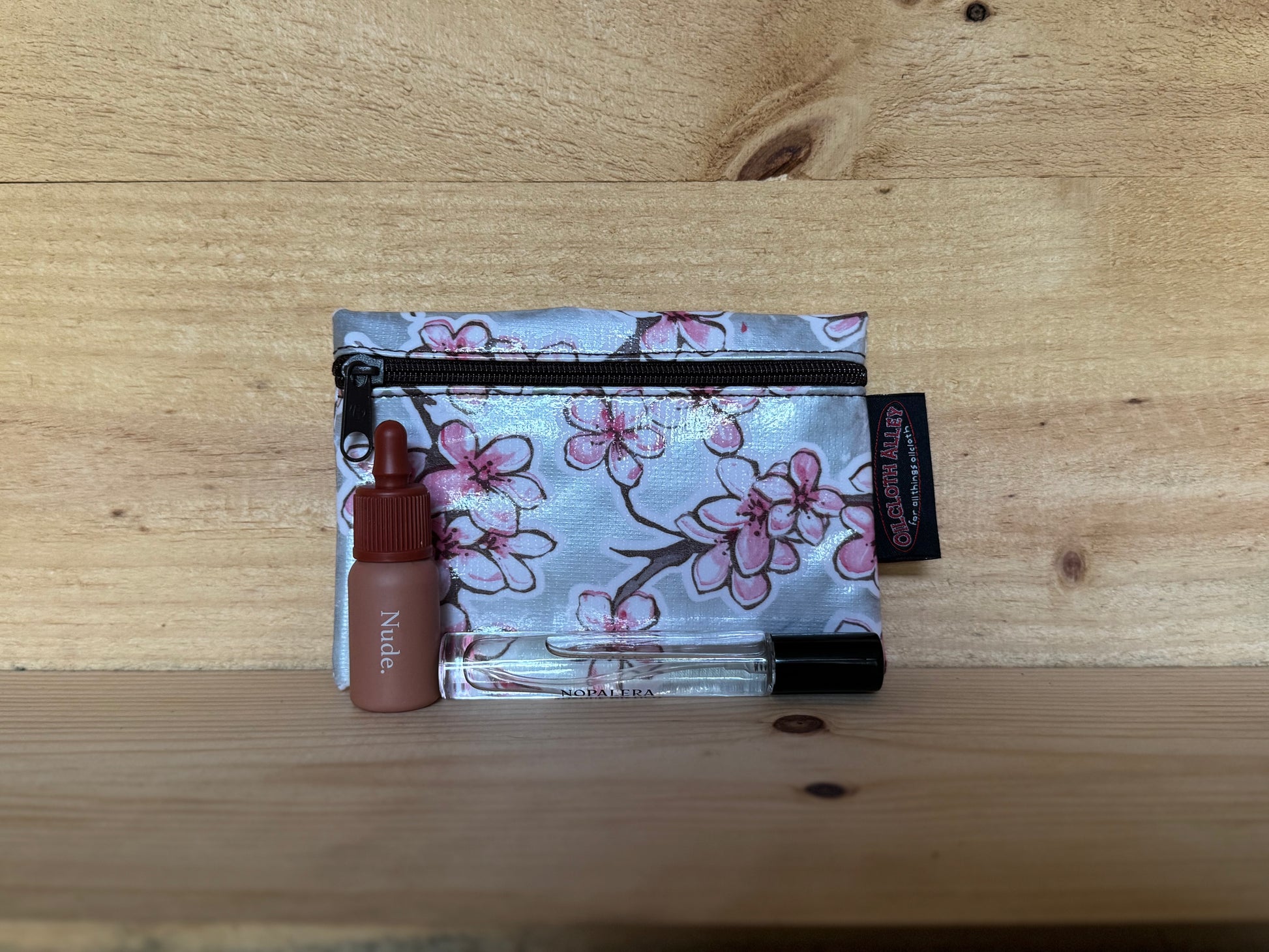 Keep your makeup in order with your new favorite mini cosmetic bag and pouch set! Our Silver cherry blossom cosmetic bags will transport you to Japan while you get your glam on!