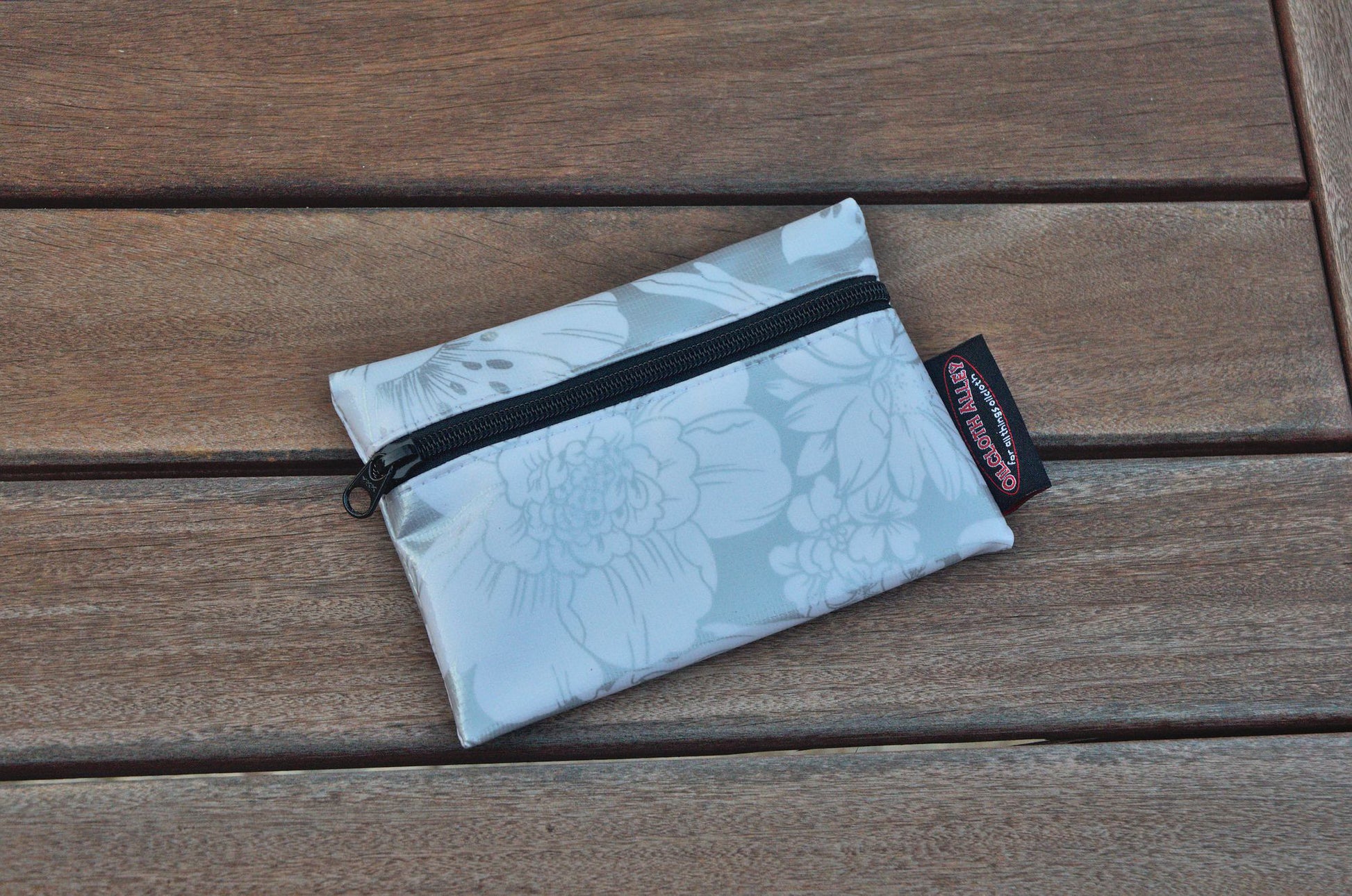 These handy pouches are as multi-purpose as they come - perfect for holding cash and change, business cards, contact lens cases, jewelry... whatever your heart desires. Toss them in your carryall or tote and get going! Mix and match with our other Oilcloth prints and products to find your aesthetic. This Chantilly is one of our favorite prints - the metallic silver is an eye-catching as it is delightful.