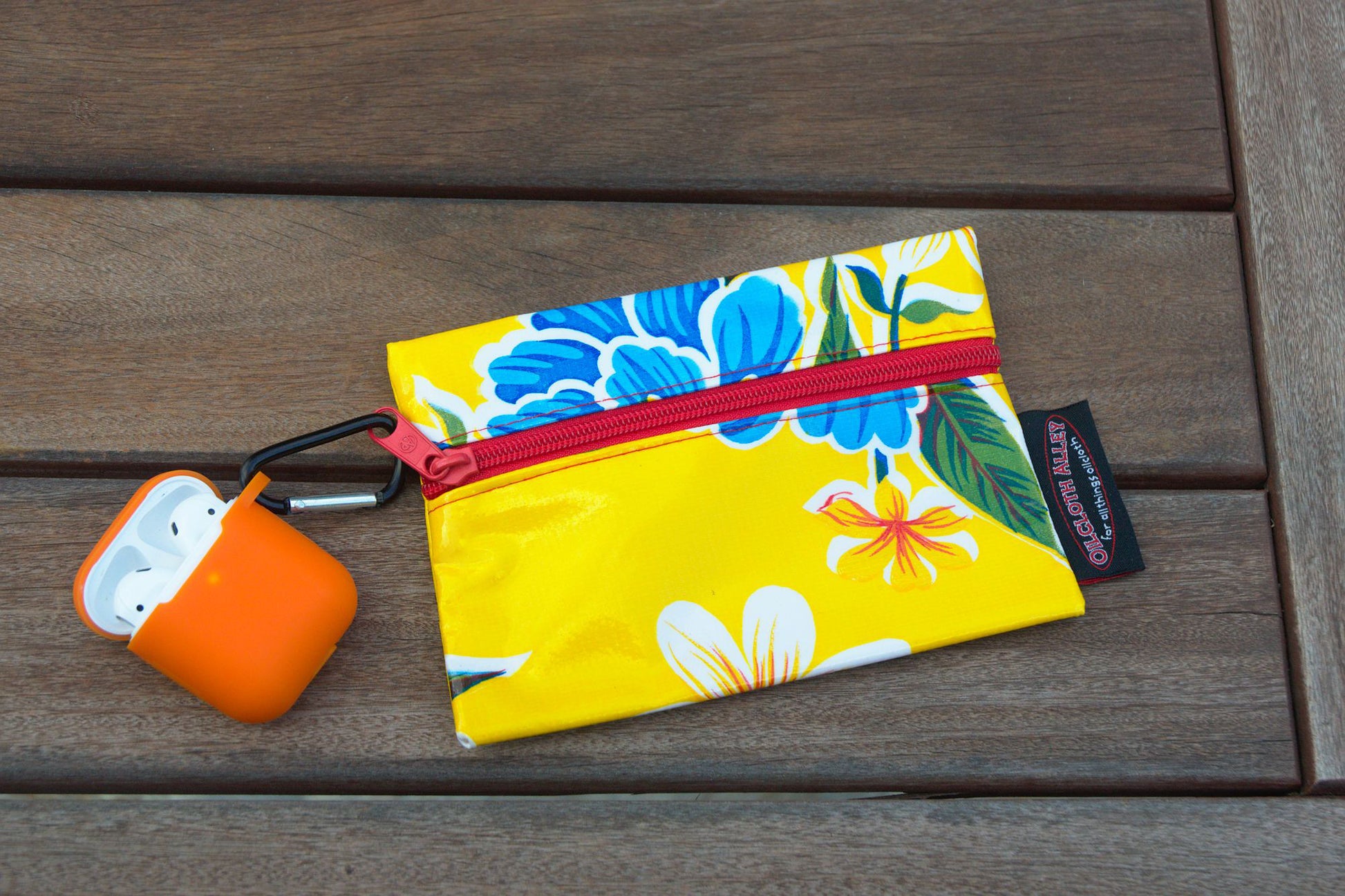 These handy pouches are as multi-purpose as they come - perfect for holding cash and change, business cards, contact lens cases, jewelry... whatever your heart desires. Toss them in your carryall or tote and get going! Mix and match with our other Oilcloth prints and products to find your aesthetic. Yellow hibiscus is eye-catching in all the right ways!