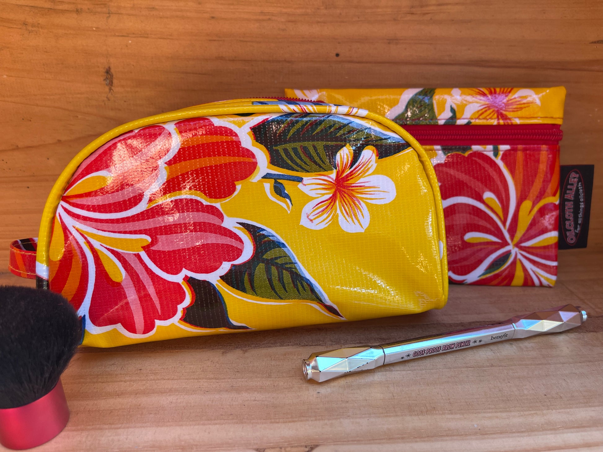 Yellow Hibiscius Oilcloth Combination Set - Mini Cosmetic Bag & Small Pouch